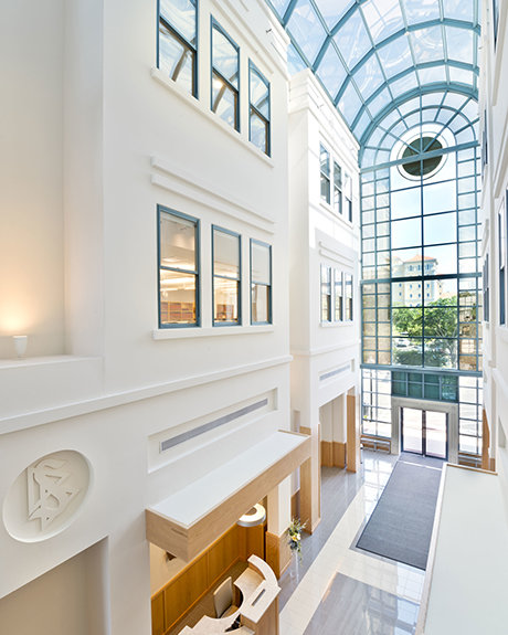Through meticulous restoration, the Church preserved the Coachman Building’s original features, including its distinctive brick façade, its signature Flemish bond pattern and arched corbels at the upper floors.