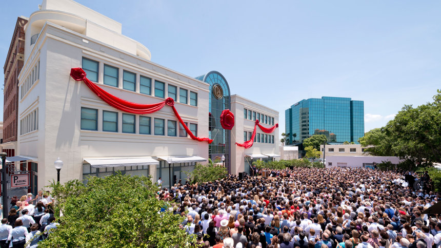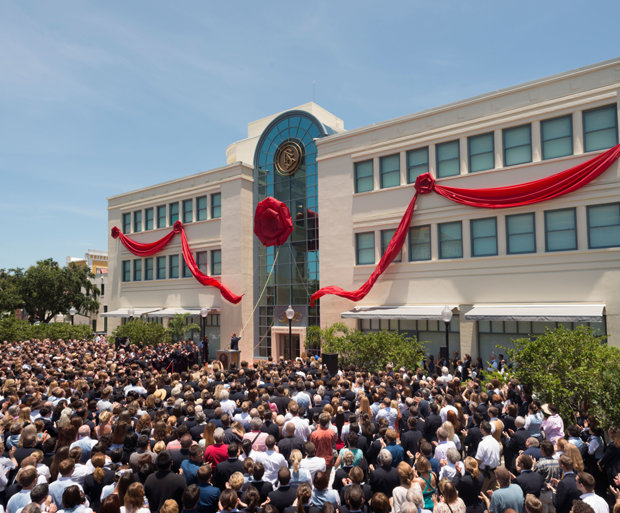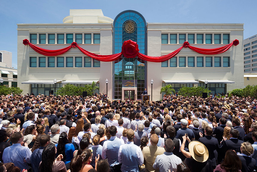 More than 4,000 Scientologists gathered in downtown Clearwater, Florida, on Sunday, June 29, to mark the dedication of the landmark Coachman Building. The historic structure now stands transformed as the religious training and counseling center for more than 2,000 members comprising the ecclesiastical ministry of the Flag Land Base, the international spiritual headquarters of Scientology.