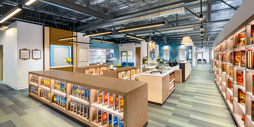 All approaching the new Church of Scientology Perth are welcomed by its striking façade. As parishioners enter the expansive space, they are greeted at the Reception with views of the Public Information Centre. The space is open with high ceilings and industrial-style lighting. Clean lines and blackened metal accents with warm rustic woods give a modern industrial feel throughout the entire space.