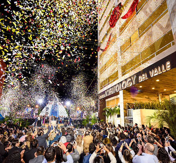 Prominently visible from a mile away, festive music and excited chatter filled the 55,000-square-foot facility as Del Valle’s new Ideal Org opened to herald the ongoing expansion of the religion. The new 12-story Church stands just off Avenue Universidad in Del Valle, its towering, 80-foot illuminated Scientology sign now extending a welcome to the most populous city in the Western Hemisphere and the largest Spanish-speaking city in the world.