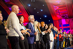 Members of the IAS and guests stand in recognition of the lifesaving and lives-changing work of the Scientology Volunteer Ministers over the past year.