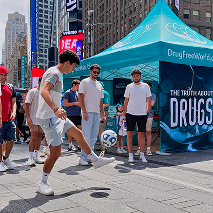 Drug-Free World, forming an international front against drug abuse, delivering millions of copies of The Truth About Drugs. The booklets were passed hand to hand at global crossroads and mega sporting events like the FIFA Club World Cup and the Super Bowl. In all, the Foundation spread the Truth About Drugs at 2,700 events across 150 nations.