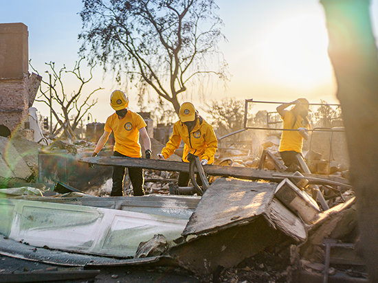 The largest VM force ever on American soil, some 2,500 Volunteer Ministers responding to historic wildfires in Los Angeles. Flames raged for days from the Pacific shoreline to the mountains, scorching an area twice the size of Paris and causing widespread evacuations. VMs helped nearly 10,000 Angelenos in a single day—more than 100,000 in total—providing logistics, sustenance and spiritual aid to first responders and answering the call for more than 70 emergency response agencies.