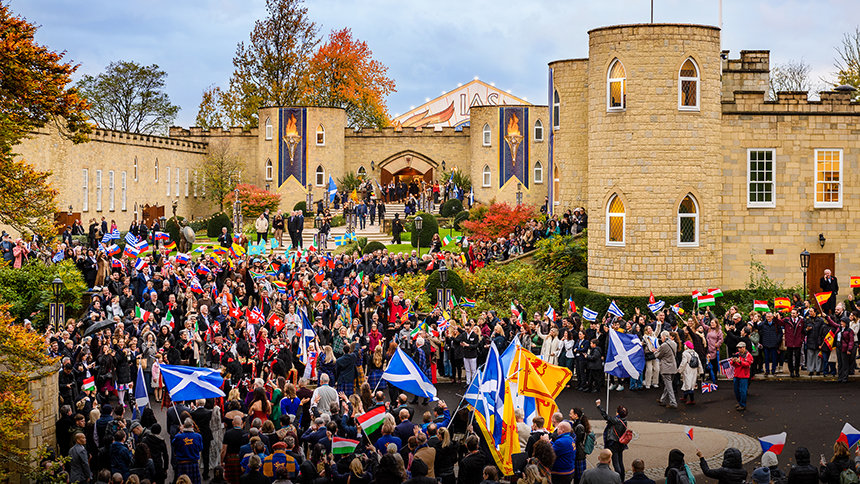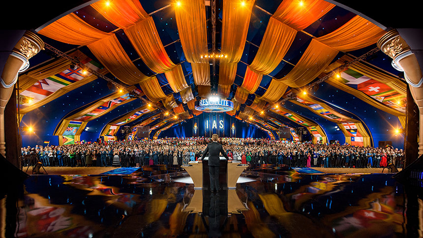 Elegance and splendor frame the celebration as members of the IAS converge from six continents upon Saint Hill, the historic West Sussex home of Scientology Founder L. Ron Hubbard. Gliding along the red carpet, the crowd enters the Grand Marquee with joyful anticipation, flags from around the globe soaring high, hearts alight as all eyes turn toward the stage.