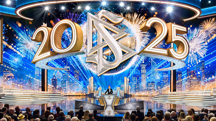 The event opened with a star-studded concert that brought the audience to their feet. The anticipation surged as plumes of sparkling lights framed the stage and a giant 2025 descended from the rafters.